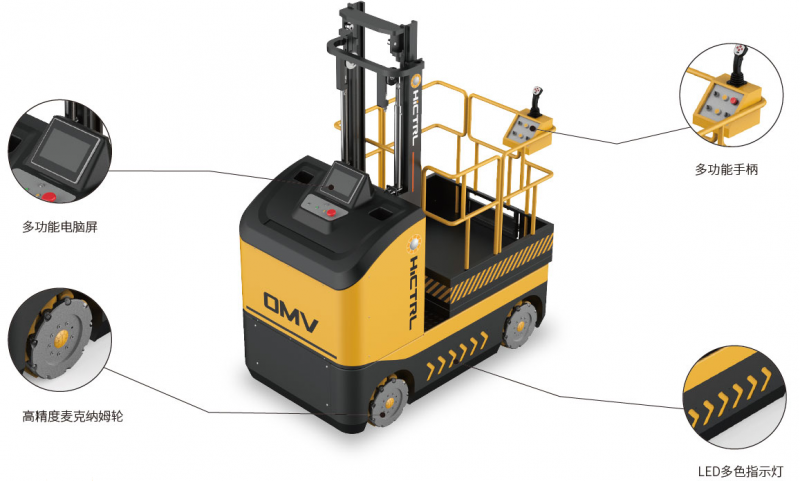 OMV揀選車顛覆傳統(tǒng)揀選車概念。零回轉(zhuǎn)半徑,側(cè)移,全方位無死角,任意漂移,窄巷道輕松、智能穿梭。可選配遙控器。