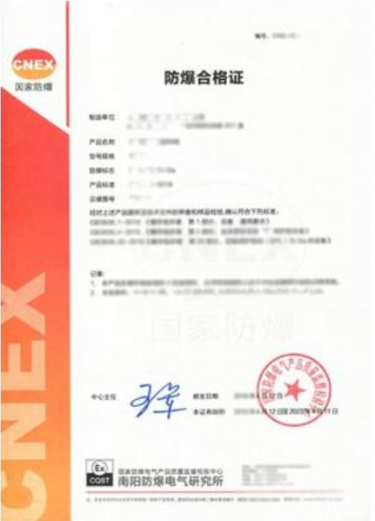 發證機構:   國家防爆所 發證時間 :   2020-03-26