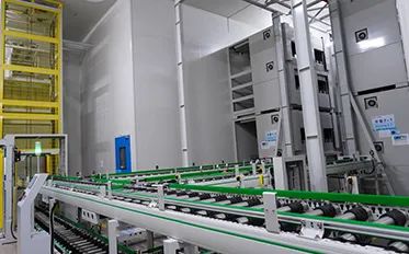 成品庫由3臺轉軌堆垛機完成鋰電池成品存取,共31,296個托盤貨位