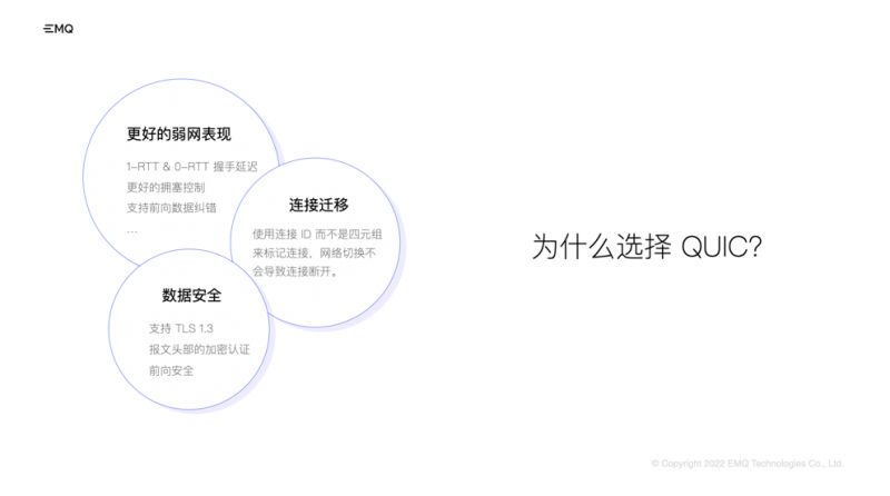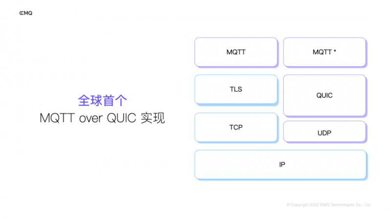 QUIC 作為底層傳輸協(xié)議,與 TCP 協(xié)議相比,在減少連接開銷與消息延遲的同時,提升了整體吞吐量和移動連接的穩(wěn)定性,非常適用于物聯(lián)網(wǎng)消息傳輸場景。