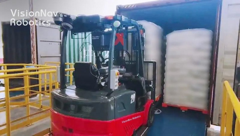 在某化工企業(yè)實(shí)際應(yīng)用時(shí),無(wú)人叉車載貨進(jìn)入狹長(zhǎng)的車廂后,基于3D感知激光技術(shù),在寬度為2.35m的車廂,貨物左右間隙小于30mm的環(huán)境內(nèi),完成兩列貨物18托的精準(zhǔn)擺放,成功實(shí)現(xiàn)月臺(tái)自動(dòng)裝貨,也是國(guó)內(nèi)首個(gè)成功實(shí)現(xiàn)廂式貨車無(wú)人叉車裝箱案例。