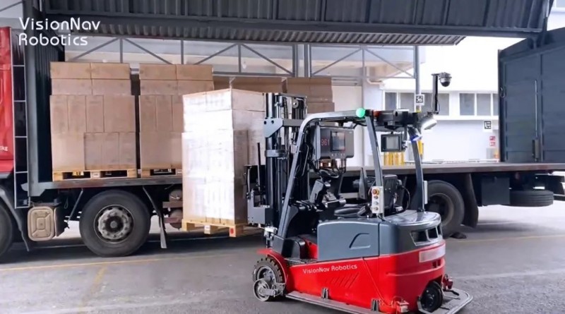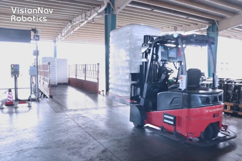 面對(duì)此次項(xiàng)目,未來(lái)機(jī)器人派出VNE20室內(nèi)外平衡重?zé)o人叉車應(yīng)戰(zhàn),以匹配室內(nèi)外環(huán)境下的無(wú)人搬運(yùn)需求。遇到室內(nèi)外復(fù)雜場(chǎng)景時(shí),VNE20無(wú)人叉車通過(guò)配置3D激光混合視覺(jué)導(dǎo)航SLAM,提取環(huán)境圖像信息,同步定位并創(chuàng)建自然特征地圖,精準(zhǔn)識(shí)別環(huán)境信息,同時(shí)結(jié)合智能算法與仿真建模計(jì)算,沉淀項(xiàng)目數(shù)據(jù),從無(wú)人叉車行駛速度、加速度、貨叉舉升高度等方面進(jìn)行不斷調(diào)整優(yōu)化,最終得出裝車效率與安全雙優(yōu)方案,解決項(xiàng)目現(xiàn)場(chǎng)的復(fù)雜環(huán)境難題。