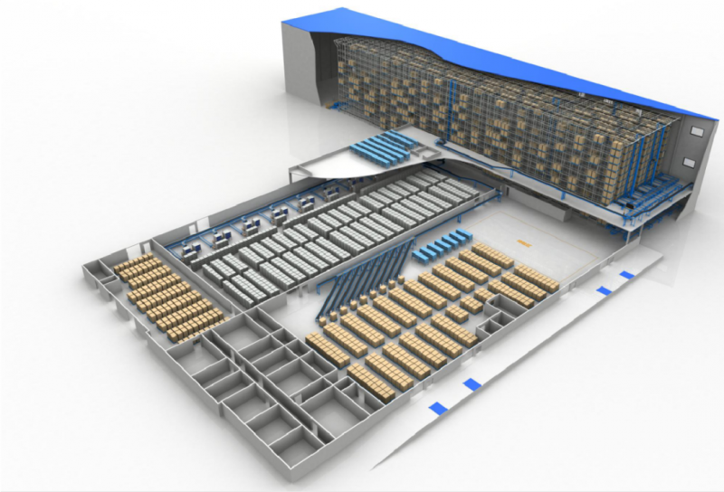 1、含有5臺高22米的堆垛機的ASRS存儲系統,共10,080個托盤貨位;