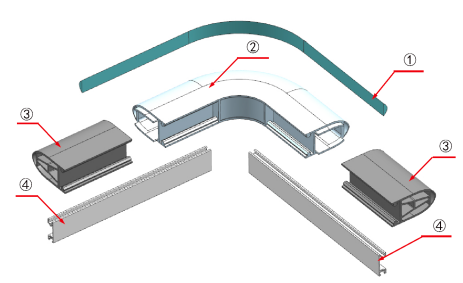 ①.導(dǎo)電條 ②.連接器 ③.本體 ④.型材