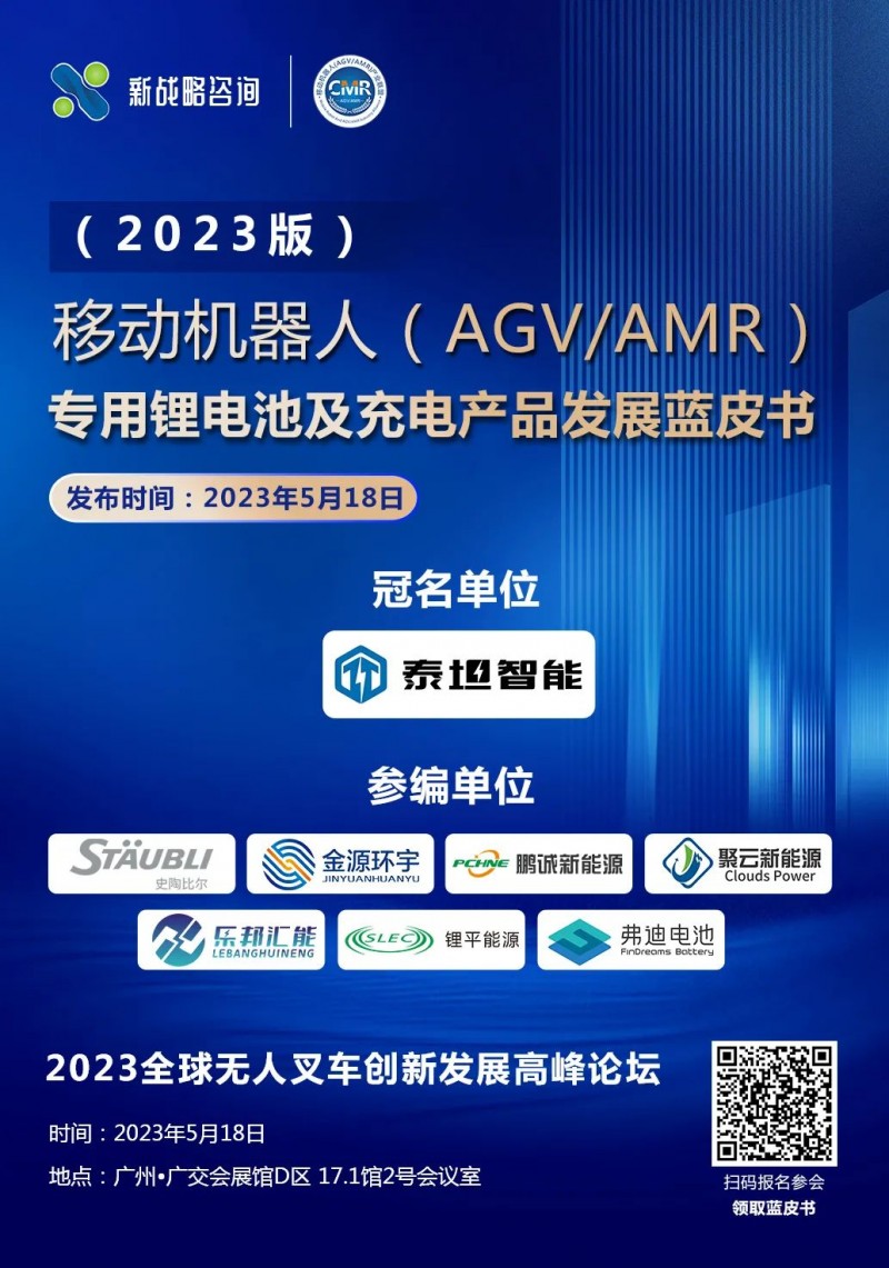 為了更好地解讀當前AGV/AMR市場鋰電池及充電產品相關應用情況及趨勢,5月18日,由CMR產業聯盟及新戰略移動機器人產業研究所主編,廣東泰坦智能動力有限公司冠名發布,史陶比爾(杭州)精密機械電子有限公司、河南金源環宇儲能技術有限公司、深圳市鵬誠新能源科技有限公司、蘇州聚云新能源科技有限公司、樂邦新能源(天津)有限公司、上海鋰平能源科技有限公司、深圳比亞迪鋰電池有限公司/弗迪電池等企業聯合參編的《移動機器人(AGV/AMR)專用鋰電池及充電產品發展藍皮書(2023版)》將在“2023全球無人又車創新發展高峰論壇”上正式發布!敬請期待!