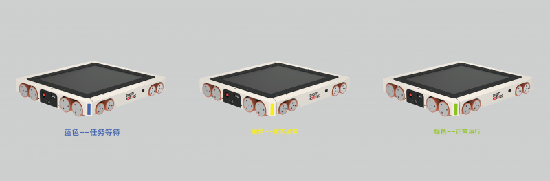 在車體四角設(shè)計狀態(tài)燈,黃色——異常;藍(lán)色——等待;綠色——正常,用戶第一時間可以通過警示燈顏色了解車體的狀態(tài),保障立體庫的穩(wěn)定運行。