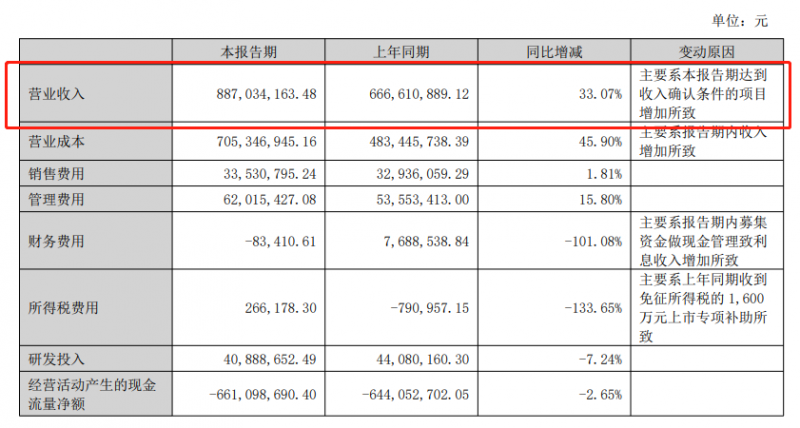 昆船智能發布2023年半年度報告,報告期內,公司實現營業收入8.87億元,同比增長33.07%。報告期內,營業收入增長主要系本報告期達到收入確認條件的項目增加所致。