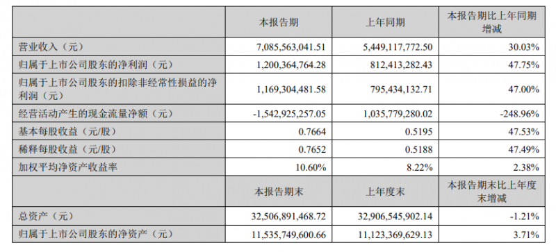 先導智能發布2023年半年度報告,該公司營業收入為70.86億元,同比增長30.03%。歸屬于上市公司股東的凈利潤為12億元,同比增長47.75%。歸屬于上市公司股東的扣除非經常性損益的凈利潤為11.69億元,同比增長47.00%。基本每股收益為0.7664元。報告期,設備驗收較多,營業收入增加。