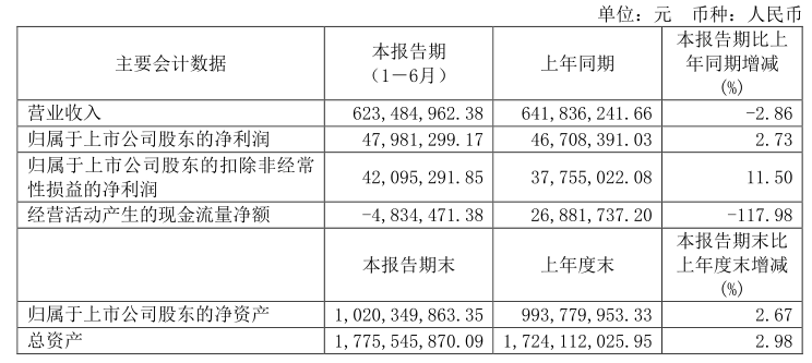 德馬科技8月20日晚間發布半年度業績報告稱,2023年上半年營業收入約6.23億元,同比減少2.86%;歸屬于上市公司股東的凈利潤約4798萬元,同比增加2.73%;基本每股收益0.4元,同比增加2.56%。