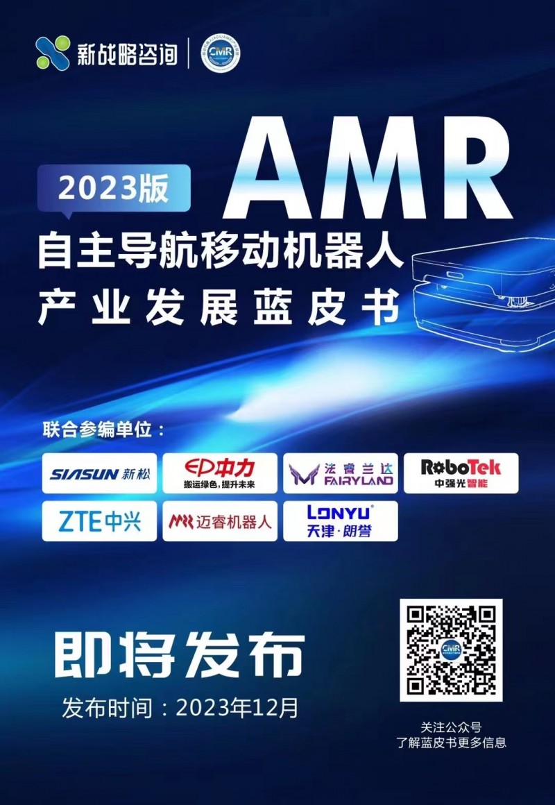 圖表:2022年度激光SLAM&視覺SLAM產品應用占比移動機器人應用所面臨的場景非常多樣,目前的自然導航技術不足以應對所有的情形,隨著未來AMR應用的進一步深入,導航技術仍是移動機器人需要突破的重點。未來,全生命周期SLAM、動態目標濾除、多傳感器融合、語義分割與識別等是移動機器人進一步提升導航能力的主要路徑。在這一過程中,3D導航技術的應用將會不斷增多。3D導航根據其所使用的傳感器的不同,分為3D激光導航跟3D視覺導航。當前,3D激光推廣條件已基本成熟,首先是算法日趨成熟,其次是3D激光雷達成本大幅降低(部分得益于自動駕駛技術的發展),同時機器人控制系統的硬件算力和成本也已具備條件。3D激光的應用有利于機器人自動建立更為詳細的環境模型,系統部署也更為簡單,即使在環境特征稀缺的情況下,也能提供更為豐富的環境信息,有利于穩定的導航,在高動態環境下的魯棒性比2D激光導航更高,同時對地面平整度的要求有所降低。3D視覺導航技術的發展近年也十分迅猛,視覺采集設備成本低,視覺數據信息量大,通過多目攝像頭組合可以獲取三維空間內更大范圍的特征數據,多種不同攝像頭可供采用,技術升級迭代很快,可實現全生命周期SLAM。目前,視覺SLAM技術迅速發展,已成為激光SLAM的一個有力補充。未來,視覺SLAM甚至可能超越激光SLAM,成為自然導航的首選技術。綜合來看,未來AMR機器人的技術的發展趨勢主要體現在以下幾個方面:技術成熟度提升:隨著AMR技術的不斷發展,機器人硬件、軟件以及導航系統等各方面技術都得到了不斷的優化和提升,使得AMR機器人的智能化水平更高,適用范圍更廣。與其他技術融合:AMR技術正在與人工智能、物聯網、云計算等其他技術不斷融合,形成更為強大的智能機器人系統。例如,借助人工智能技術,AMR機器人能夠更好地進行自主決策和智能感知,提高自主導航能力和避障能力。部署成本降低:隨著AMR技術的不斷發展,機器人制造成本也在不斷降低,使得更多的企業和組織能夠接受并部署AMR機器人。同時,越來越多的服務提供商也開始提供AMR機器人的租賃服務,進一步降低了使用成本。應用場景多樣化:隨著AMR技術的不斷成熟和市場需求不斷提升,AMR機器人的應用場景也越來越多樣化。除了傳統的制造、物流領域,AMR機器人也開始進入醫療、農業、餐飲、零售等領域,進一步拓展了應用范圍。在產業鏈整體的協同發展下,當前AMR已經引來了發展的高峰期,未來,隨著技術的不斷發展和市場需求不斷提升,AMR機器人將會在更多領域得到應用和發展。為了更全面的解析當前AMR的應用現狀及未來發展趨勢,2023年12月,在“2023年中國移動機器人(AGV/AMR)產業發展年會上”,CMR產業聯盟聯合行業眾多代表企業,將重磅發布《自主導航移動機器人(AMR)產業發展藍皮書(2023版)》,敬請期待!