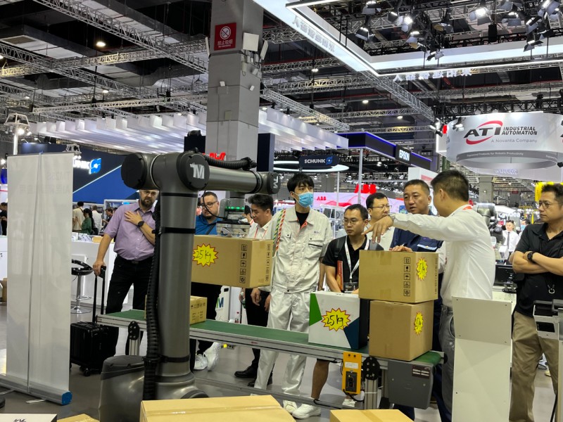 TM AI Cobot S系列產(chǎn)品線新增TM25S,負(fù)載提升至25公斤,可應(yīng)對更多大型工件取放應(yīng)用。與市場上其他 25 公斤級協(xié)作型機(jī)器人相比,除自身重量比較輕以外,還具有更長的臂展范圍。達(dá)明機(jī)器人內(nèi)建視覺系統(tǒng)搭配外部 3D 相機(jī),結(jié)合 3D 及 AI 智慧辨識技術(shù),實(shí)時(shí)偵測混箱卸棧中箱體大小與位置信息,無需事先指定棧型,可隨意擺放,也可應(yīng)付傾斜、緊貼或具有膠帶包覆等復(fù)雜情況。
