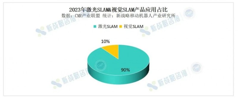 根據CMR產業聯盟數據,新戰略移動機器人產業研究所統計,2023年,落地的AMR中,激光SLAM產品占比約為90%,視覺SLAM產品占比為10%。激光SLAM仍舊是應用主流。