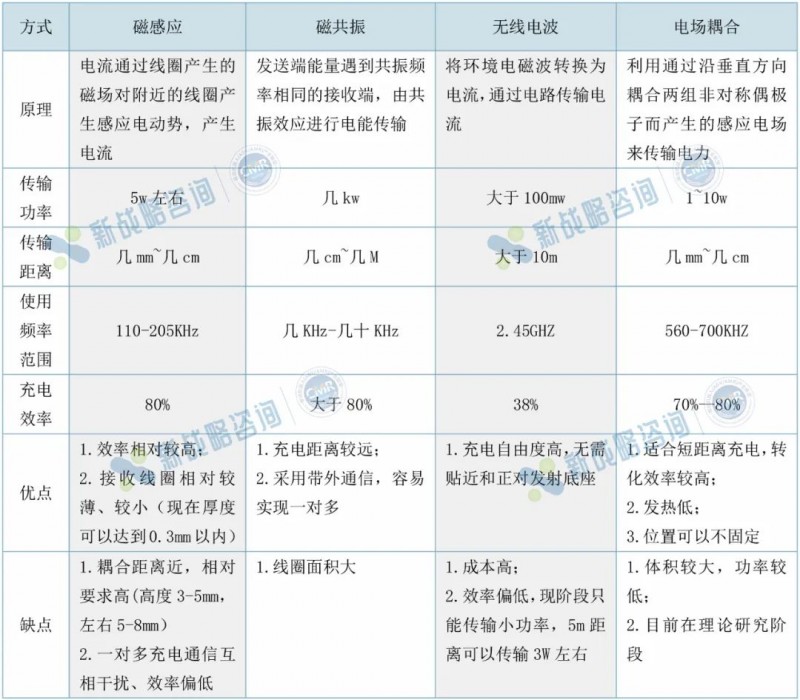 從產品布局來看,這些無線充電企業大多基于磁共振原理開發產品,聚焦在中大功率無線充電技術。