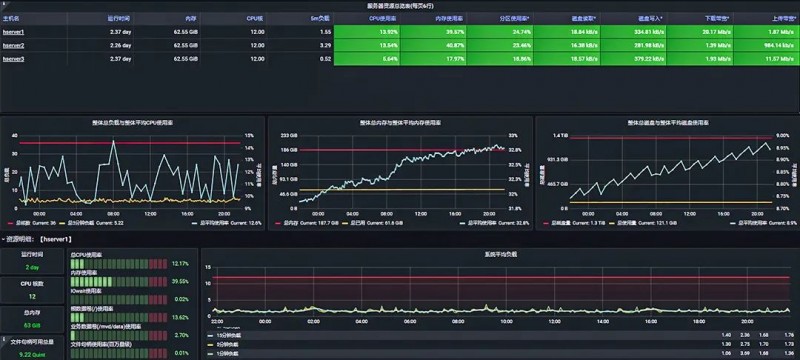 該運維管理平臺開放控制臺,可集群中的各臺服務器資源進行整合、實時的監管,通過可視化圖表,全覆蓋各種資源指標,幫助快速巡檢整體情況。
