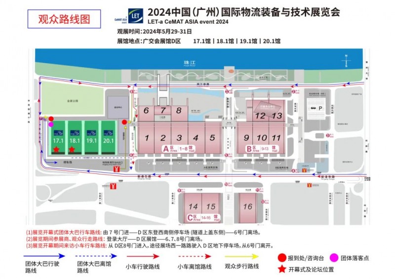 廣州地鐵8號(hào)線“新港東站A出口”,步行至廣交會(huì)D區(qū)展館6號(hào)門(mén)進(jìn)入登錄大廳。