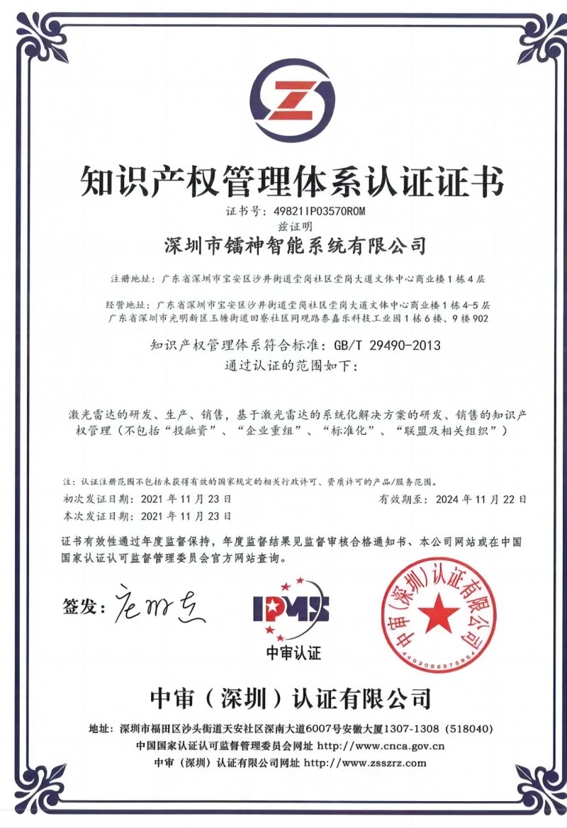 鐳神智能對技術(shù)專利的申請與保護持有極高的重視度。公司不僅成功取得了知識產(chǎn)權(quán)管理體系認證,更憑借其卓越的表現(xiàn),榮獲廣東省知識產(chǎn)權(quán)示范企業(yè)的稱號,同時被評為深圳市知識產(chǎn)權(quán)優(yōu)勢單位。這些榮譽充分體現(xiàn)了鐳神智能在知識產(chǎn)權(quán)保護方面的領(lǐng)先地位和不懈努力。