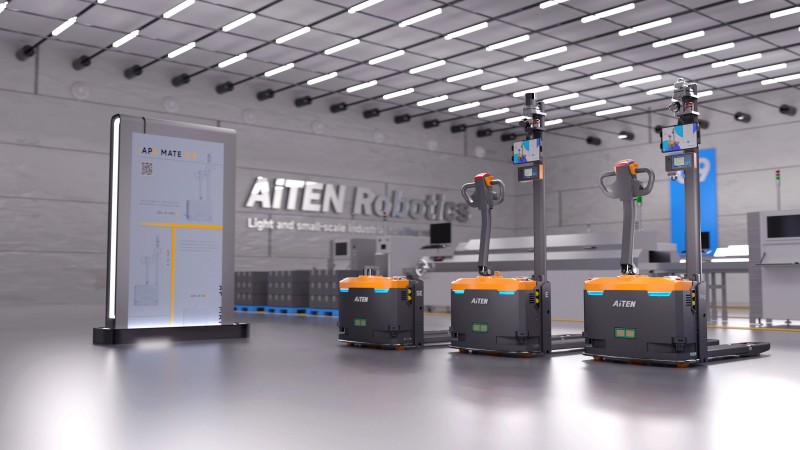 芮磊介紹:“Ape15 Mate 2.0小搬機器人是AiTEN今年7月推出的新品,憑借其獨特‘人機共融’特性與算法的應用,能夠識別和避免與人員或其他設備的碰撞,并且增加了3D激光雷達和廣角相機的升級版APe15可在室外導航 ,托盤識別時能夠更精準。同時,支持單機版與系統版快速切換而不受網絡限制,能靈活應對各種復雜搬運環境,而除了360°立體避障、2000mm巷道空間、8%爬坡能力、30mm越溝寬度等標配功能外,Ape15小搬Mate2.0還搭載了AiTEN FRC-3.0核心AI大腦,這是實現其智能化和高效運作的關鍵。”
