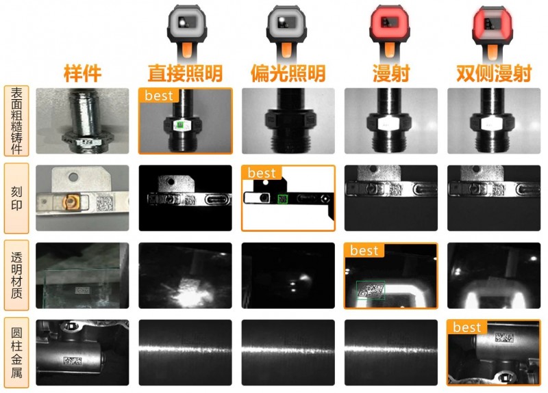 IDH9000集成直接照明、偏光照明、漫射、雙側(cè)漫射四種照明方式,打破打碼材質(zhì)、工藝、外形、表面處理等限制,準(zhǔn)確識別傳統(tǒng)設(shè)備無法識讀的目標(biāo),輕松面對各類材質(zhì)和場景。