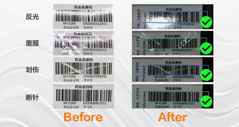 手持產品:采用自主研發的高性能識別算法,可有效應對條碼臟污、缺損、低對比度等情形,并快速輸出條碼信息