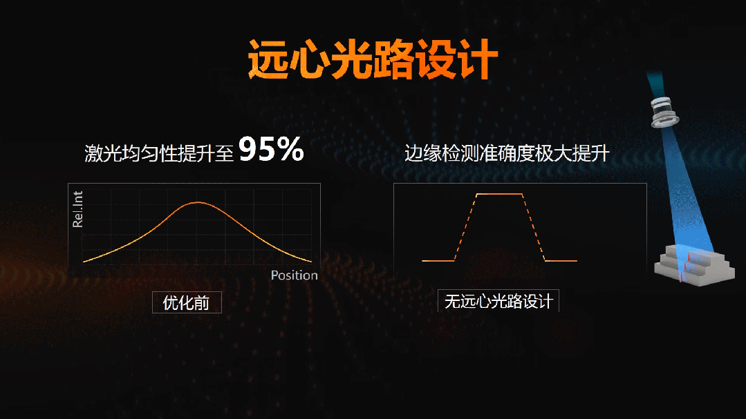 新一代3D激光輪廓傳感器的激光模塊采用近遠心光路,并配備定制化大光圈鏡頭,使激光均勻性提升至95%,有效減少視野盲區,極大提升邊緣檢測準確度。
