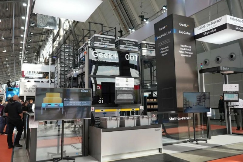 極智嘉 (Geek+)在德國LogiMAT 2025物流展會上,重磅發布全新升級的新一代貨箱到人、貨架到人和托盤到人三大智能揀選方案。