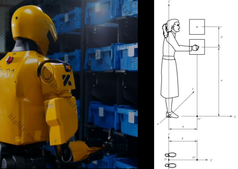 在搬運(yùn)能力方面,K2的雙臂負(fù)載30公斤的性能目標(biāo),超過(guò)一般人體工學(xué)推薦標(biāo)準(zhǔn)(約23.8公斤),并能在負(fù)載重心距離人體重心250mm以內(nèi)實(shí)現(xiàn)最大搬運(yùn)效果。隨著負(fù)載距離增加,其承載能力會(huì)按比例下降,但仍具備在650mm距離下搬運(yùn)15公斤的能力,對(duì)應(yīng)真實(shí)工業(yè)中大尺寸金屬件上下料等工序。