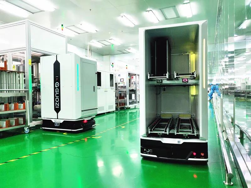 國自光伏晶硅電池片工廠AGV智能搬運整體解決方案,能實現大規模智能物流機器人物料轉運,替代原有人工作業模式,大幅提升產能并持續保證生產線穩定運行。