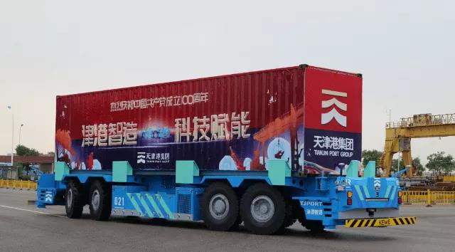 6月,天津港集團(tuán)創(chuàng)新研發(fā)、生產(chǎn)制造的首臺(tái)人工智能運(yùn)輸機(jī)器人正式下線,投入天津港C段智能化集裝箱碼頭進(jìn)行測試。該產(chǎn)品配備了一套智能可視化管理系統(tǒng);采用4軸8輪底盤系統(tǒng),實(shí)現(xiàn)全輪驅(qū)動(dòng)和轉(zhuǎn)向;總重量僅23噸,載重65噸,最高速度35千米/小時(shí),可裝載20尺、雙20尺、40尺、45尺標(biāo)準(zhǔn)集裝箱。
