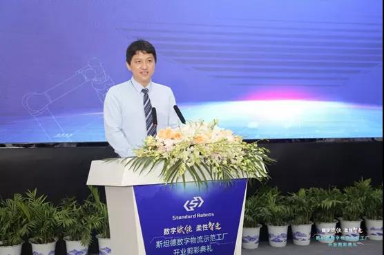 昆山市人大常委會(huì)主任張?jiān)铝帧⒗ド绞腥嗣裾笔虚L(zhǎng)張建成、哈爾濱工業(yè)大學(xué)副校長(zhǎng)張文叢、陸家鎮(zhèn)黨委書記方勇、陸家鎮(zhèn)黨委副書記/鎮(zhèn)長(zhǎng)錢璁和斯坦德機(jī)器人總經(jīng)理王永錕等眾多領(lǐng)導(dǎo)嘉賓為斯坦德數(shù)字物流示范工廠開(kāi)業(yè)剪彩,市鎮(zhèn)領(lǐng)導(dǎo)與斯坦德機(jī)器人相關(guān)負(fù)責(zé)人共同為斯坦德機(jī)器人安全標(biāo)準(zhǔn)測(cè)試中心揭幕,并共同參觀了斯坦德數(shù)字物流示范工廠。