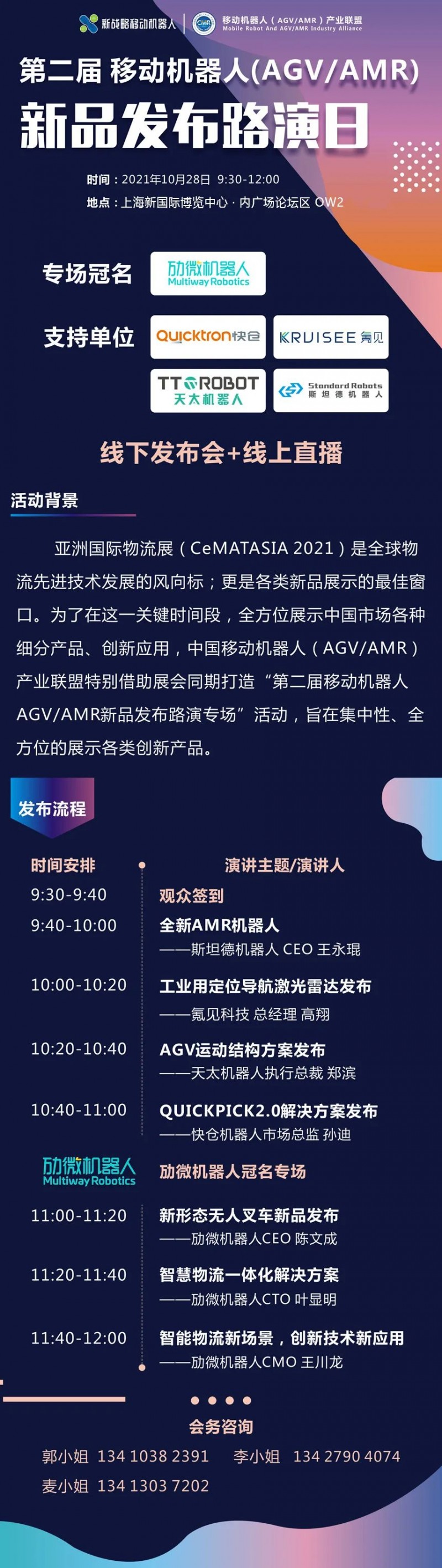 主辦單位:中國移動機器人(AGV/ AMR)產業聯盟  承辦單位:《物流搬運機器人》雜志社  新戰略移動機器人產業研究所  CeMAT ASIA獨家冠名企業:迦智科技
