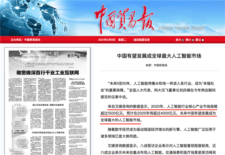 以人工智能為例,中國作為制造業(yè)大國,為其提供了豐富的應(yīng)用場景。據(jù)艾媒咨詢數(shù)據(jù):2020年人工智能行業(yè)核心產(chǎn)業(yè)市場規(guī)模將超過1500億元,預(yù)計在2025年將超過4000億元,中國人工智能產(chǎn)業(yè)在各方的共同推動下進(jìn)入爆發(fā)式增長階段,市場發(fā)展?jié)摿薮螅磥碇袊型l(fā)展為全球最大的人工智能市場。