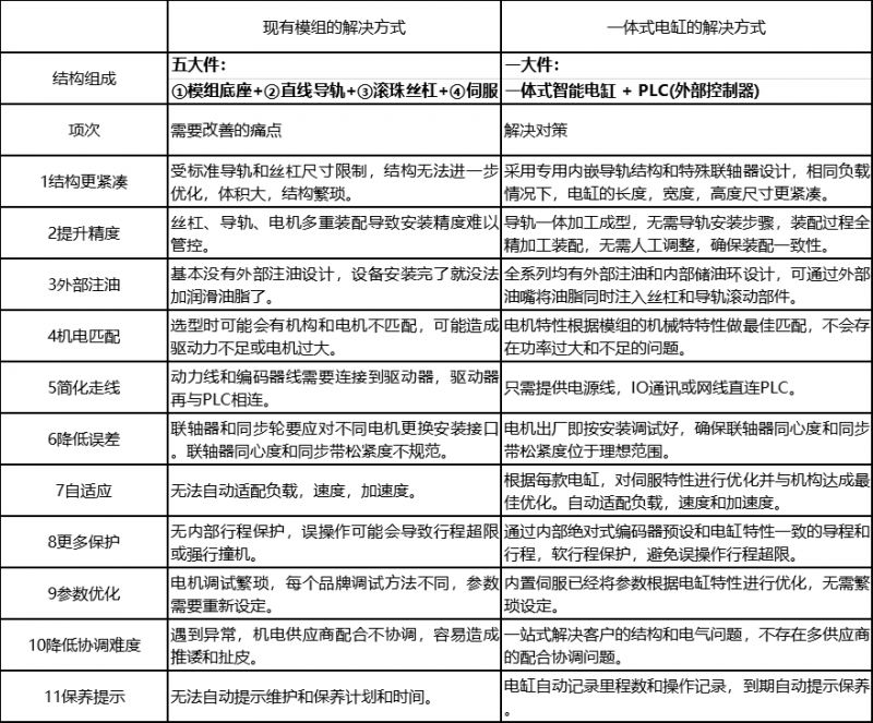 現有普通伺服模組和智能電缸的對比