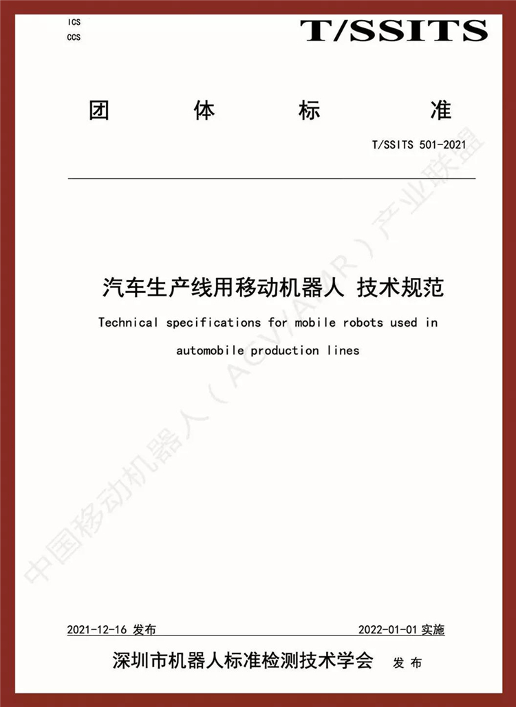 蘇州羅伯特木牛流馬物流技術有限公司作為移動機器人行業領先企業參與了《汽車生產線用移動機器人技術規范》相關團體標準的編寫工作。標準規定了汽車生產線用移動機器人的分類、系統組成、性能要求、技術要求、環境與應用安全、試驗方法、檢驗規則及標志、包裝、運輸和貯存。適用于在汽車生產線的沖壓、焊接、涂裝、總裝及廠內物流等領域應用的移動機器人及系統的技術要求、安全要求及試驗方法。