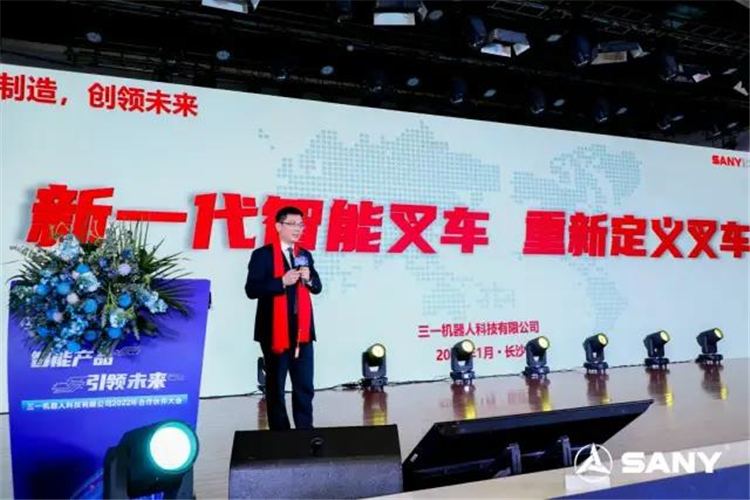 2022年1月7日,以“智能產(chǎn)品,引領(lǐng)未來”為主題的三一機(jī)器人科技有限公司2022年合作伙伴大會(huì)在湖南長沙舉行,會(huì)議上,三一機(jī)器人賦能離散智能制造一體化解決方案正式發(fā)布,AGV新品和3噸高壓鋰電平衡重叉車新品震撼亮相。