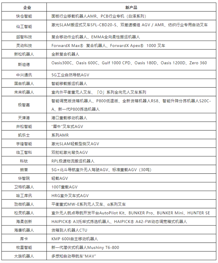 根據(jù)新戰(zhàn)略移動機器人產(chǎn)業(yè)研究所不完全統(tǒng)計,2021年,行業(yè)先后有27家企業(yè)推出了47款新產(chǎn)品,包括叉車、自然導(dǎo)航AGV、重載AGV、移動底盤以及各類行業(yè)專機等。