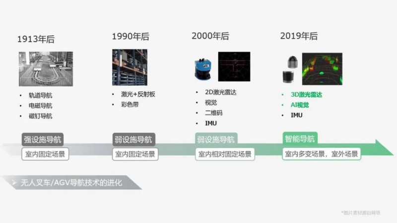 回顧無人叉車歷史,導航技術的進化無疑是行業發展最生動的注腳。